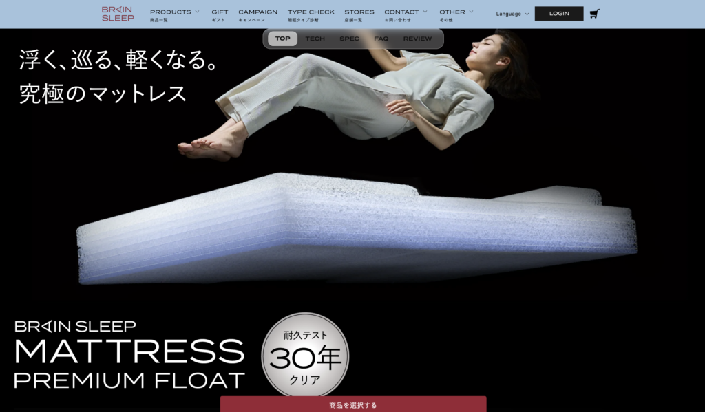 | 4位 | ブレインスリープ | 約66,000円〜 | 体圧分散・通気性 | 快適重視 |
